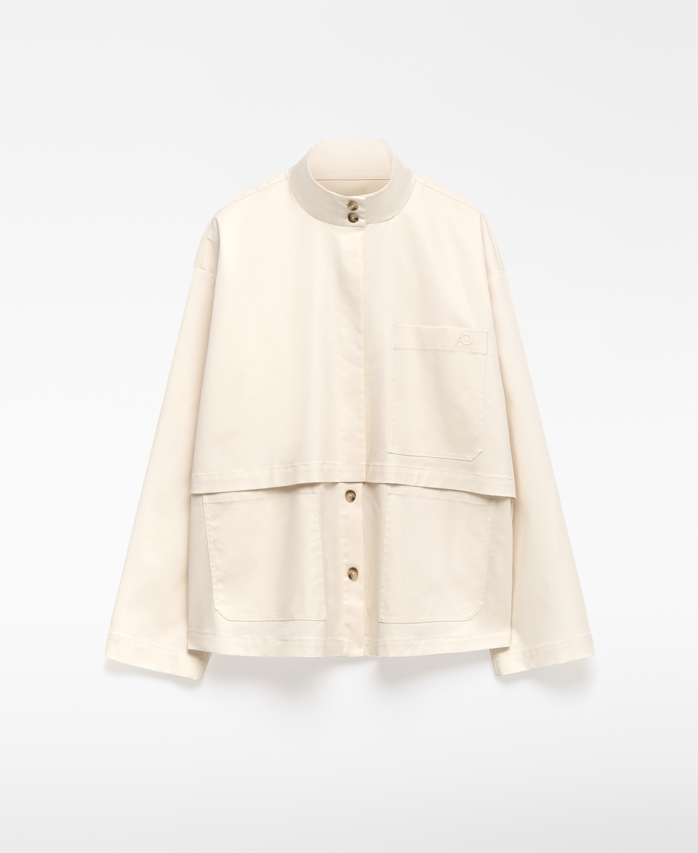 Camisa crudo recta mujer. Cuello chimenea con cierre botón. Manga larga con botón y abertura trasera. Botonadura frontal. Canesú en delantero. Bolsillos de plastrón en delantero. Bolsillo en pecho con logo bordado.